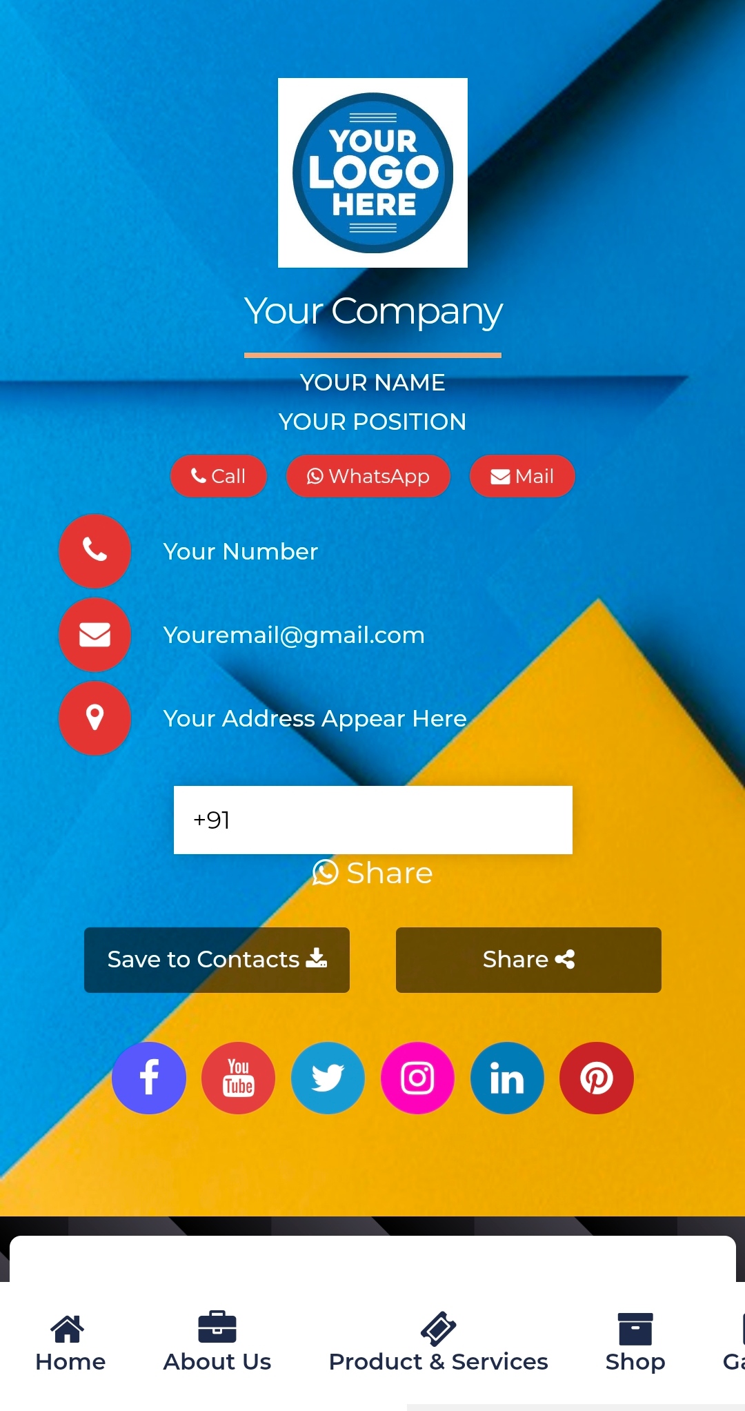 Design your digital visiting card in 2 minutes - it's easy, elegant and free. This Online Vcard is always in your pocket, never tears and never runs out. Your Digital Visiting Card can be easily updated with our user-friendly dashboard, so you won't need to re-print a business card again.